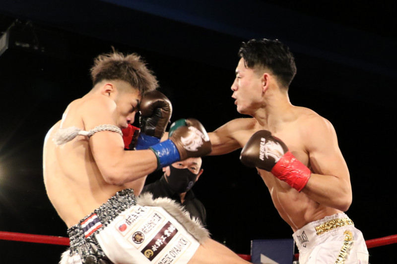 小笠原はアグレッシブでパワーのあるパンチで大脇を攻め立てる