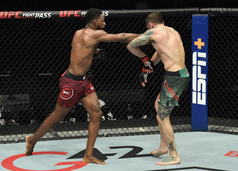 マグニーがキエーザに打撃で応戦(By courtesy of Zuffa LLC / Getty Images)