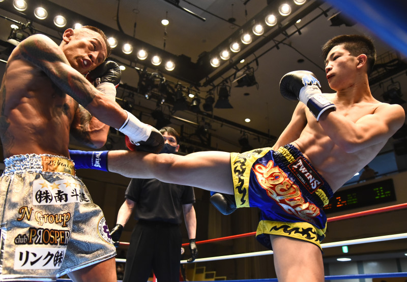 渡部(左)をKOし僅か4戦目で王座を獲得した響貴(右)