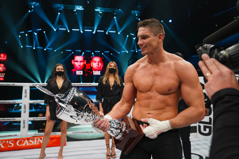 優勝トロフィーを手にするリコ・ヴァーホーベン©️GLORY
