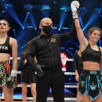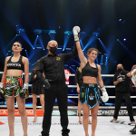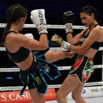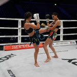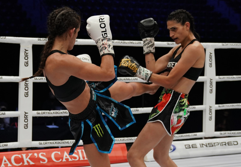 ペレイラ(右)に鋭い左ミドルを放つヴァン・スースト(左)©️GLORY