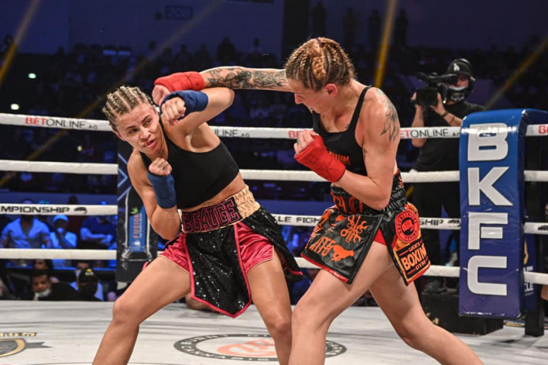 素手ボクシングに初挑戦の元UFC美女ファイターのペイジ・ヴァンザント(左)(BKFC公式サイトより)