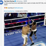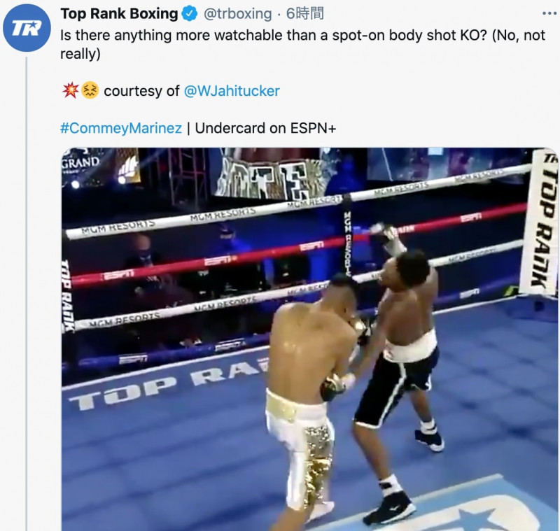 強烈なボディブローを放つタッカー(右)(トップランク社の公式SNSより)