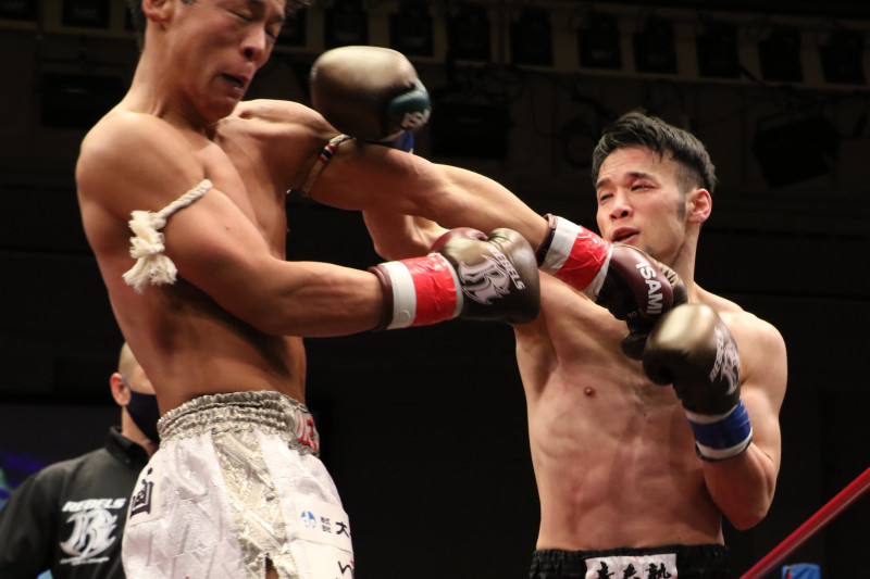 大川も打ち負けずパンチで前進