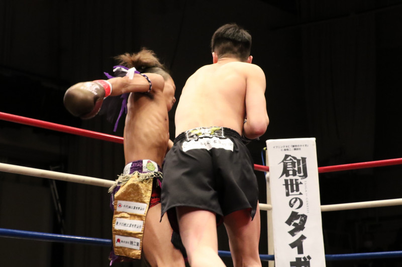 豪快に打ち抜く左ストレートで2度目のダウンを奪取した麻火