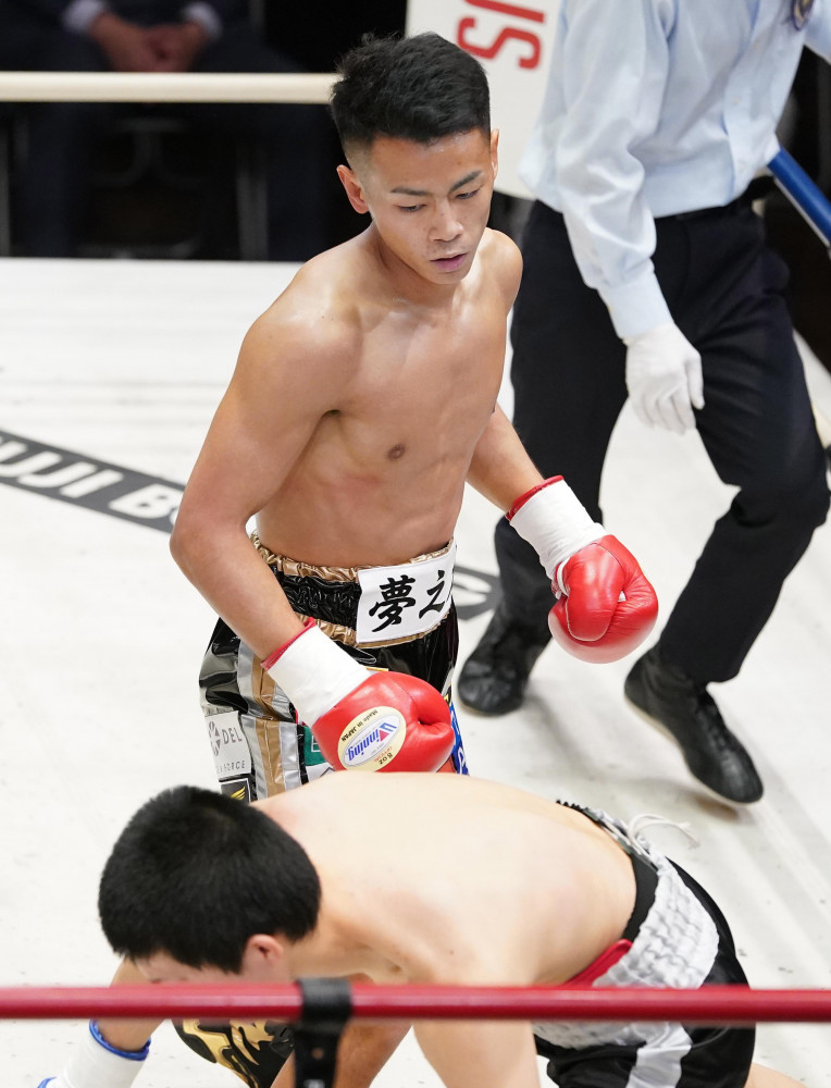 元K-1王者・武居がわずか103秒のKO劇でプロボクシングデビューを果たした(Naoki Fukuda)