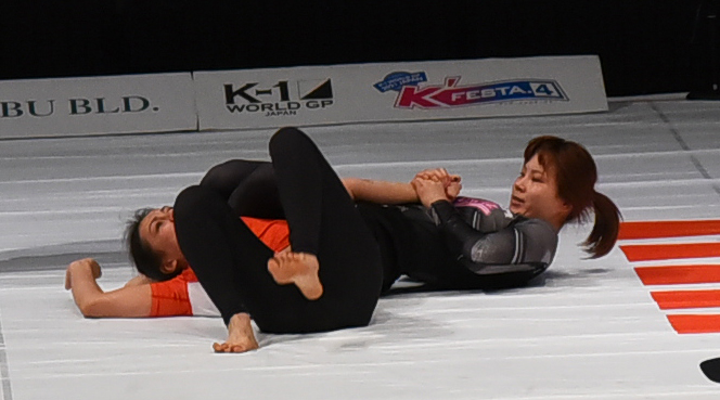 石黒遥希(右)がラウレンティーノ(左)に15秒で腕十字を極め一本勝ち