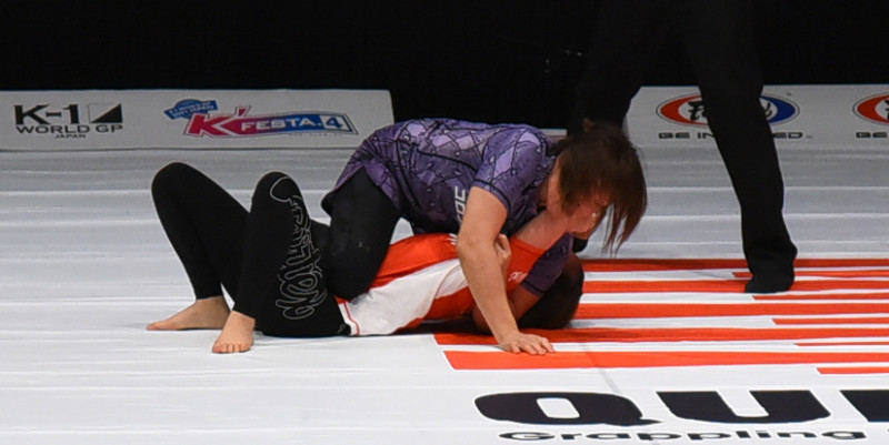 端貴代(上)が吉田綾子(下)にアームロックで一本勝ち