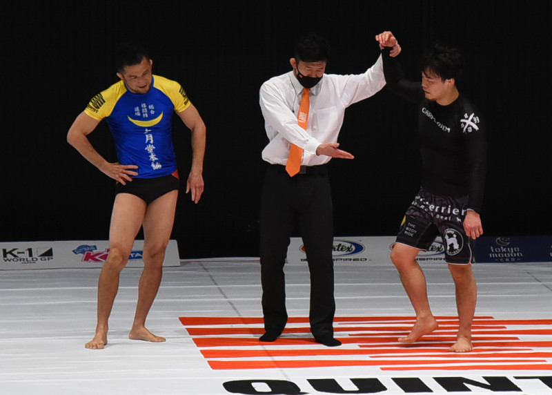 中村(左)に勝利した世羅(右)