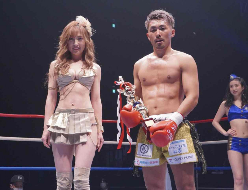 ラウンドガールを務めた熊田曜子さんと