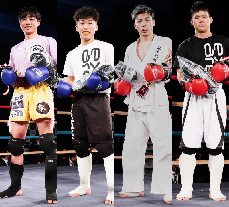 一般4階級の優勝者。左から大久保琉唯、藤井海人、吉岡龍輝、矢尾勇樹