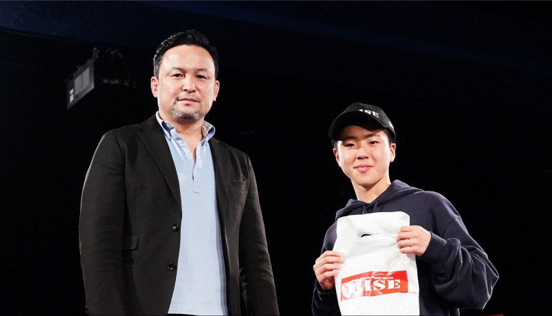 RISE賞を受賞した那須川龍心(右)と、RISE伊藤隆代表