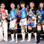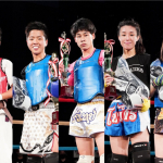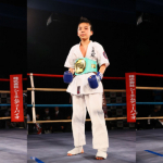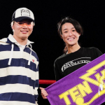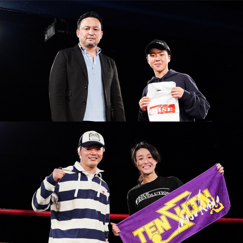 RISE伊藤隆代表(左上)と、RISE賞を受賞した中学生-50kg優勝の那須川龍心(右上)。那須川天心(左下)と、那須川天心賞を受賞した女子部-50kg優勝の寺田由利亜(右下)