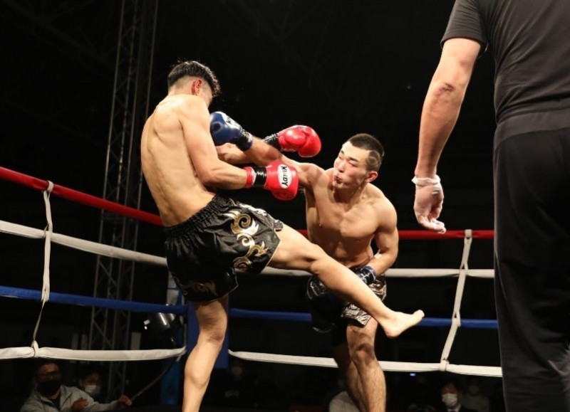 青谷(右)が長身の篠原に圧力をかけていく