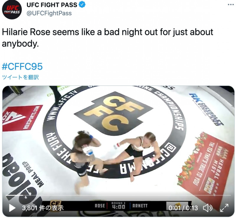 悶絶のカーフキックKO!(UFC FIGHT PASS公式SNSより)