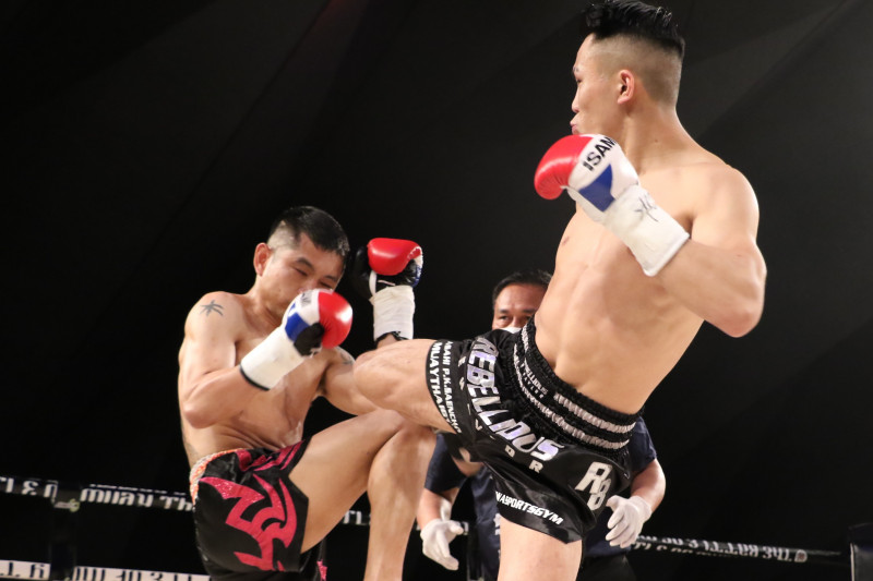 朝陽は強烈なミドル、左右フックでPONちゃんを攻める