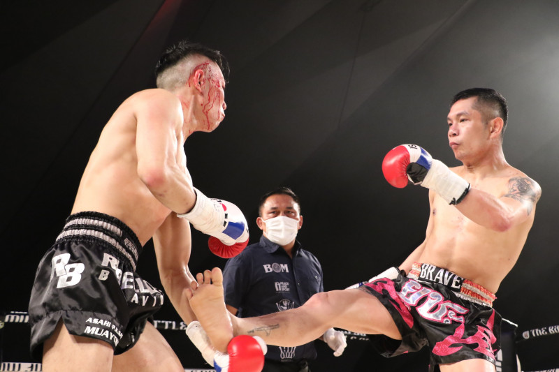 朝陽は2RにPONちゃんのヒジで右側頭部をカット