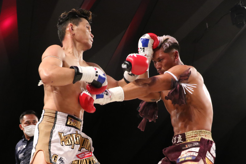 プライチュンポンがヒジの連打で柿沼を粉砕