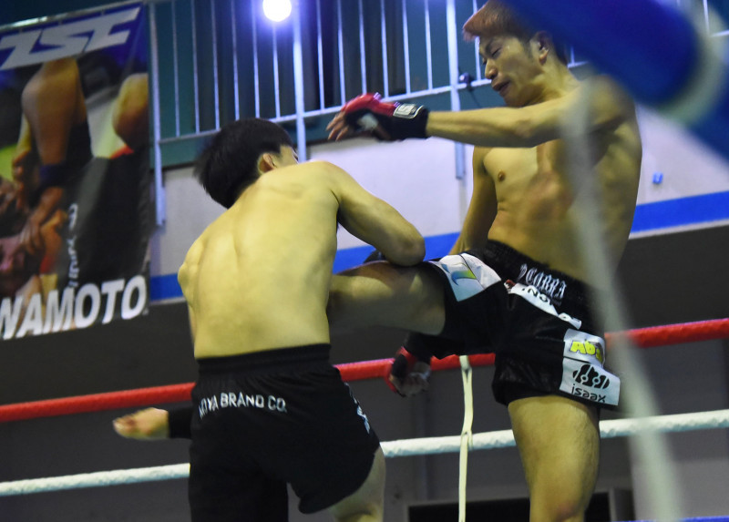 右ミドルを当てる小金(右)