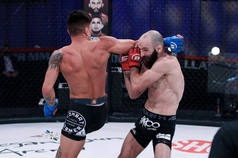 ウィルソンのスピニングバックエルボーが炸裂!©️Bellator