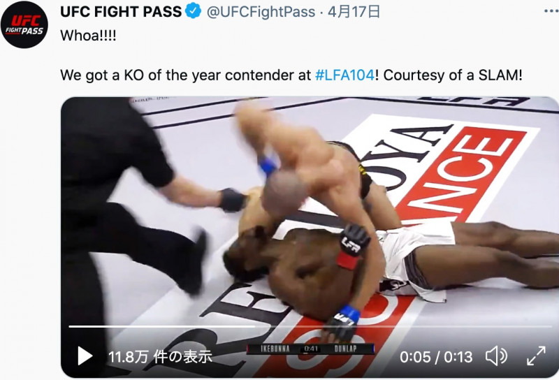 超危険なバスターKO!完全失神の相手に無慈悲なヒジ打ち追撃(UFC FIGHT PASS公式SNSより)