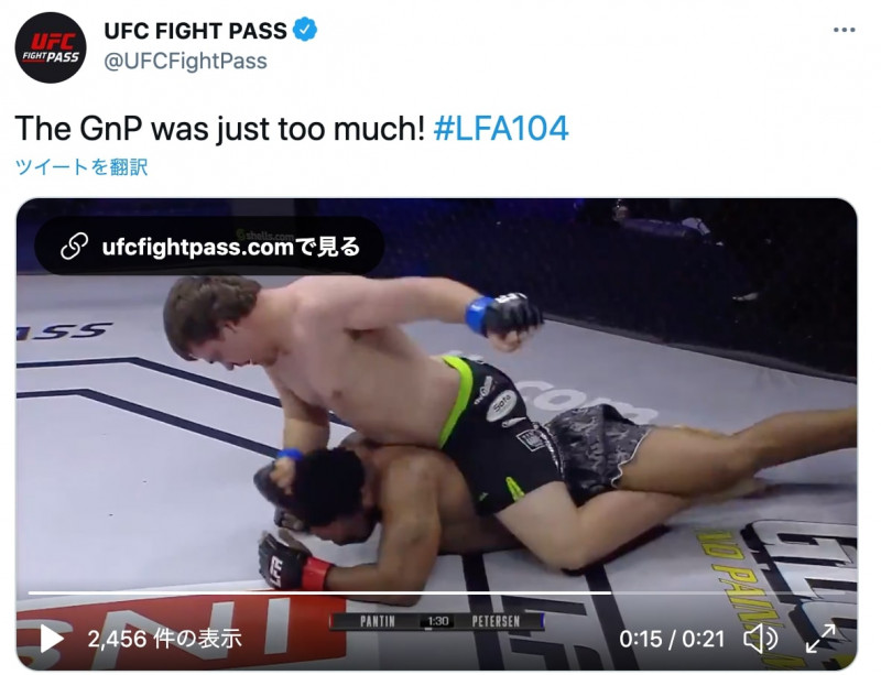 115kgヘビー級巨漢ピーターセンがパンチ連打!“首振り人形”の様に殴られた相手は戦意喪失(UFC FIGHT PASS公式SNSより)