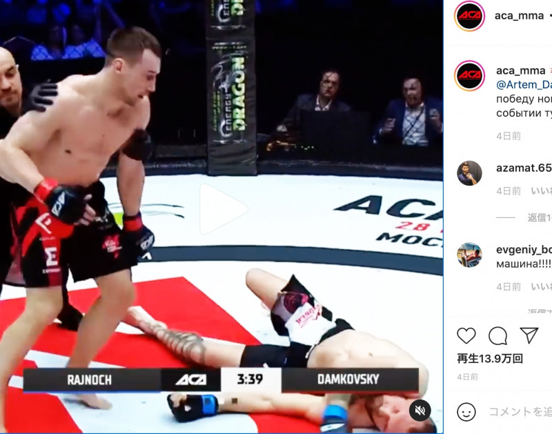 最後は強烈アッパーで鮮烈KO勝利を飾ったダムコフスキー(左)(ACA公式SNSより)