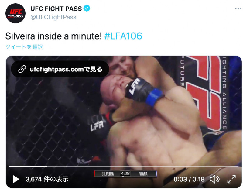 桜庭和志と激闘のコナン息子が戦慄の秒殺一本!(UFC FIGHT PASS公式SNSより)
