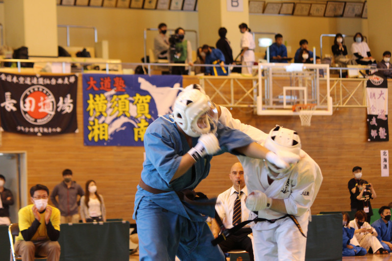 右クロスでテンプルを捕らえる奈良(白)