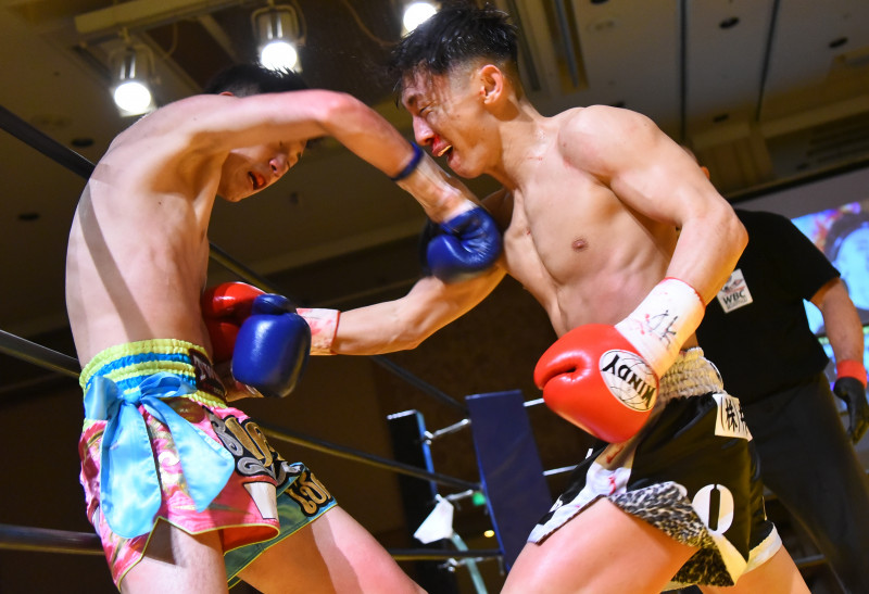 白幡(右)から2度のダウンを奪って判定勝ちした平松(左)