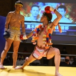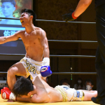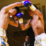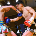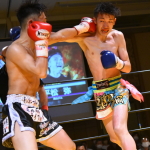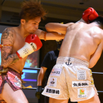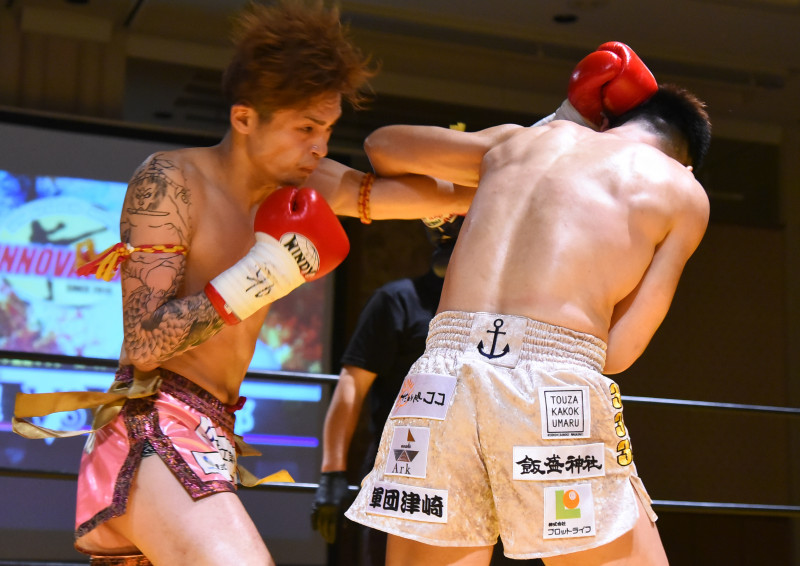 馬木(左)の左ストレートと津崎(右)の左フックが交錯した時に、馬木は左肩を脱臼したという