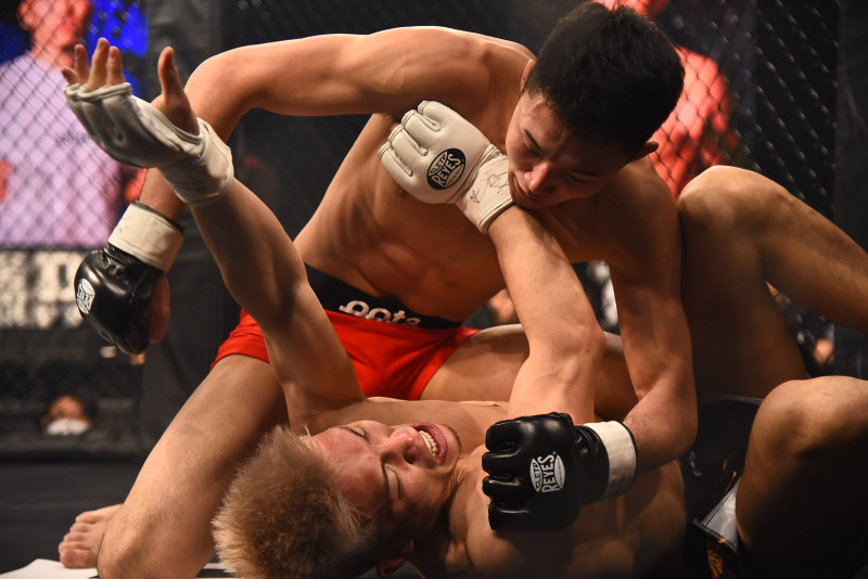 田嶋(上)のパウンドを耐える齋藤(下)