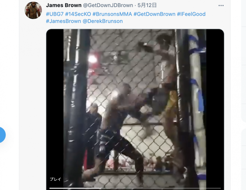 顔面にヒザ蹴りがクリーンヒット、わずか13秒のKO劇となった(ジェームス・ブラウンのインスタより)