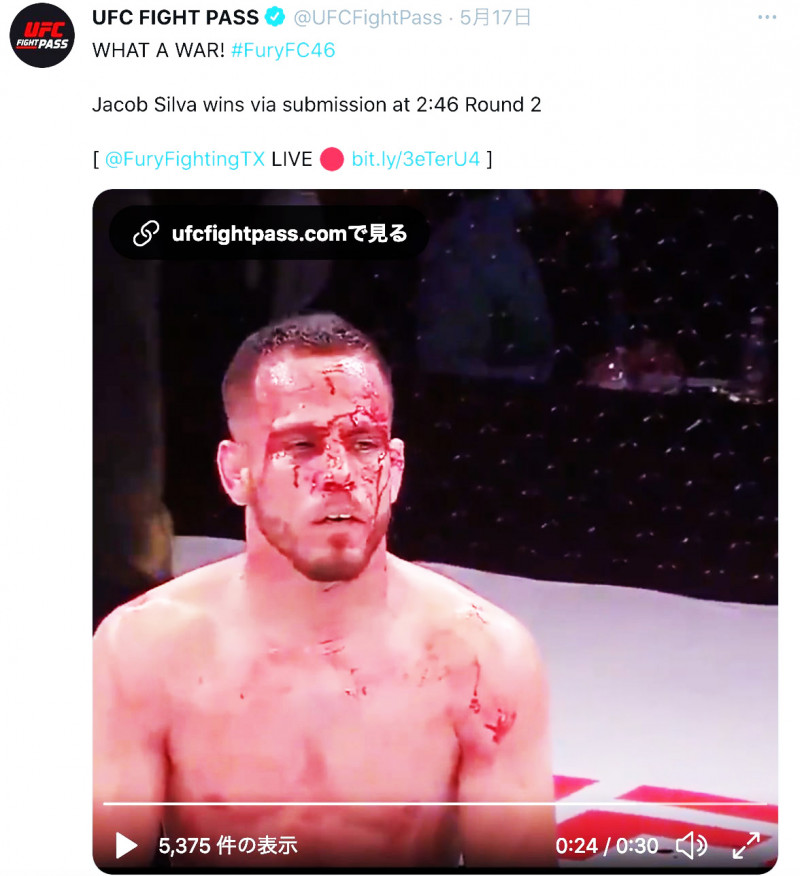 “崖っぷち”の顔面流血男が大逆転の一本勝ち!(UFC FIGHT PASS公式SNSより)
