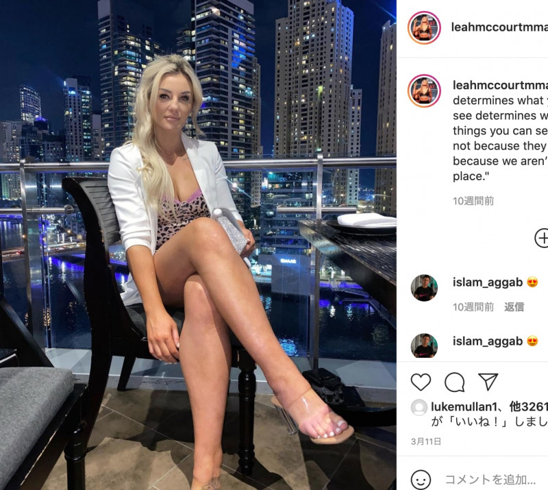 モデルの様なすらりと長い美脚を持つマクコート(自身のSNSより)