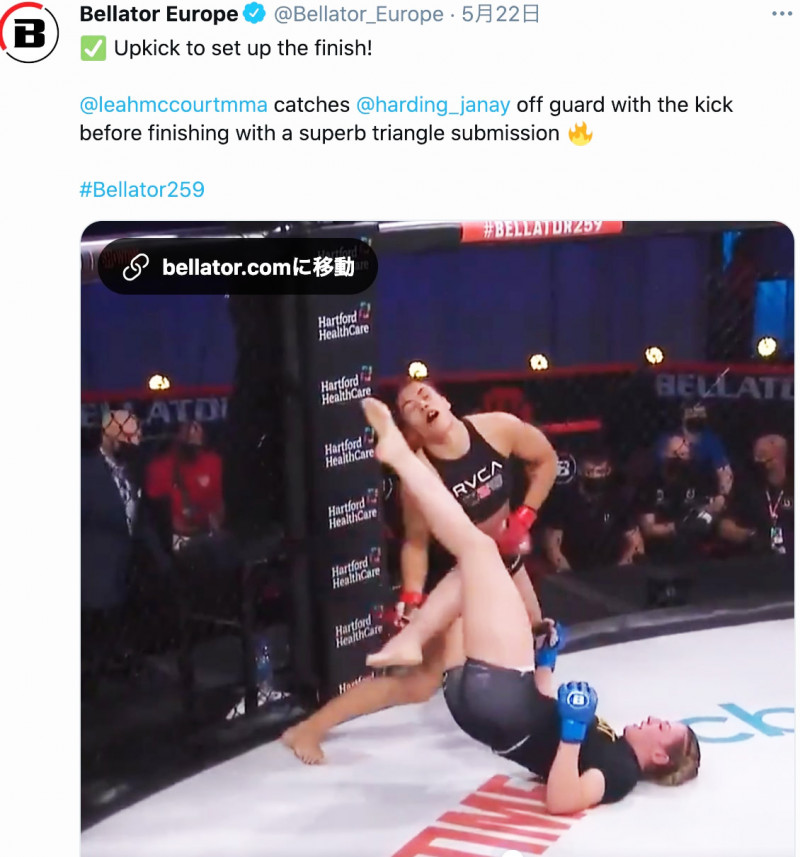 美人シングルマザー戦士の“蹴り上げがヒットした瞬間(Bellator Europe公式SNSより)