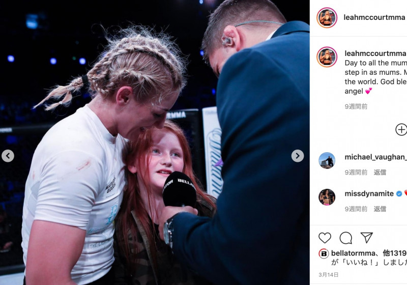 一人娘と勝利インタビューに答えるマクコート(自身のSNSより)