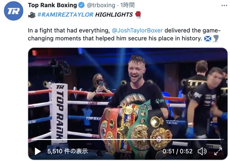 4団体のベルトを手にしたテイラー(TOPRANK Twitterより)