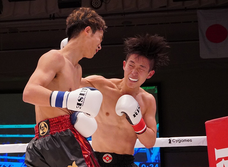 樋口(右)が強烈なパンチを振るう。判定勝利した