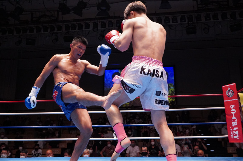 喜入が右ローを放つ