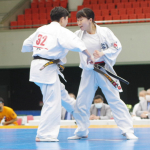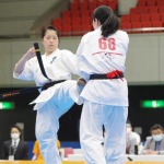 前蹴りで突き放す浅古