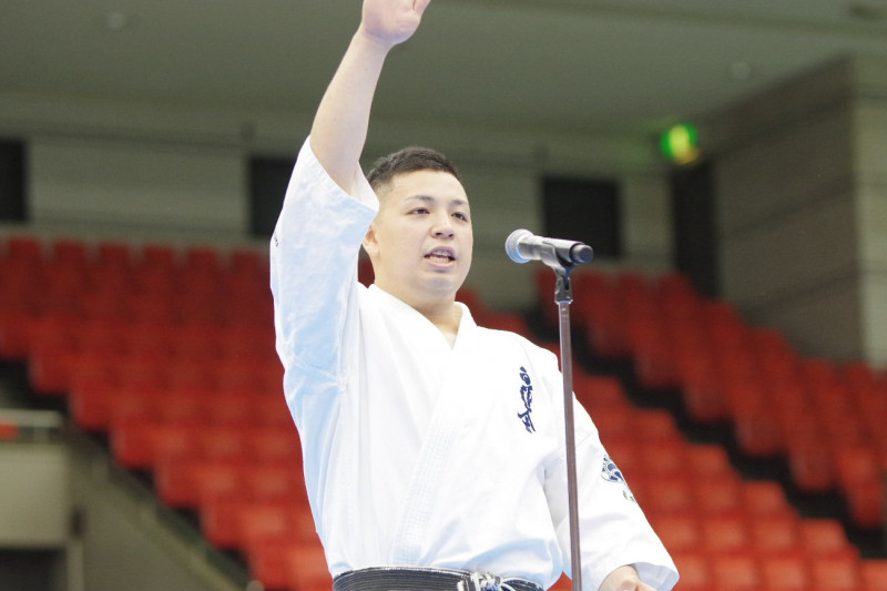 選手宣誓は重量級2連覇でディフェンディング王者の山口翔大(白蓮会館)が務めた
