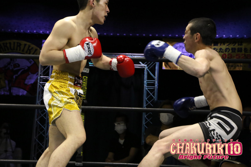 鈴木(左)の強烈な左がヒット