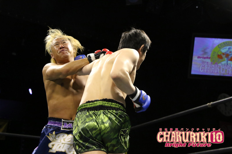 キックルールで一斗缶のパンチを被弾するも倒れなかった佐野