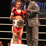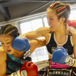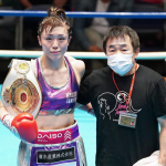 奥田朋子とタイトルマッチ前の計量=19年9月