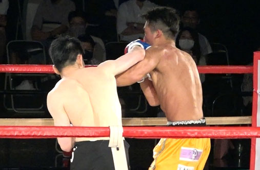 菊地のパンチがヒットした瞬間