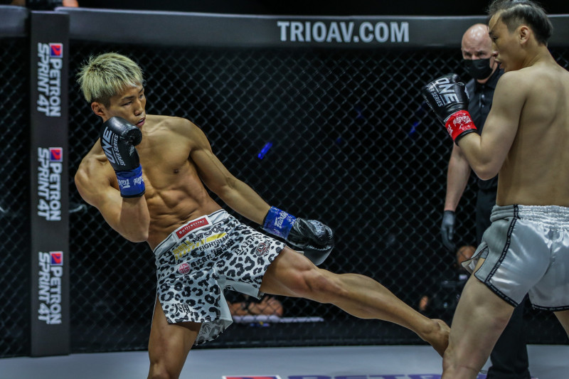 ONEキックボクシング初挑戦の内藤、ローキックとカーフキックを中心に攻め完勝した ©️ONE