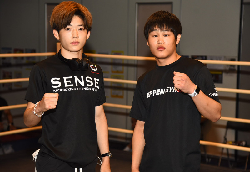 有井渚海(左)と寺山遼冴(右)がリングインし、7月4日のCKC 2021 -54kgトーナメントに向けて意気込みを語った