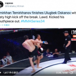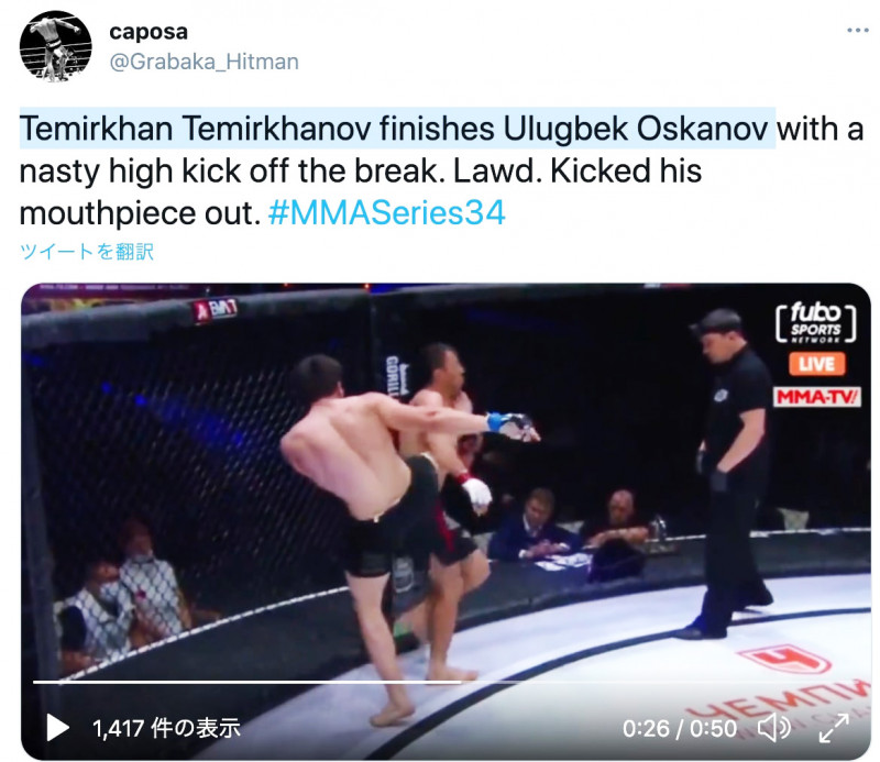 見えない角度からの戦慄ハイキックKO劇!衝撃で吹き飛ぶマウスピース!@caposaより