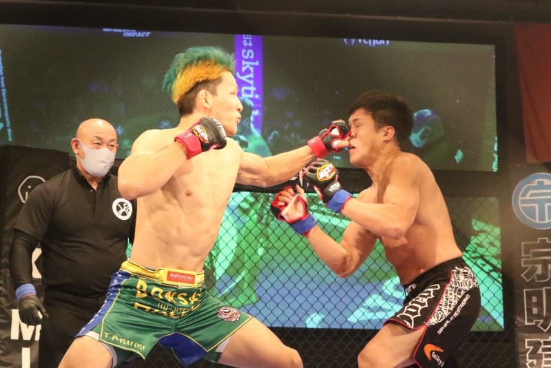 鈴木は鋭いジャブで石塚の前進をストップ